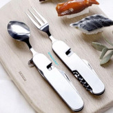 متاسفانه این کالا در حال حاضر موجود نیست. میتوانید از طریق لیست بالای صفحه، از محصولات مشابه این کالا دیدن نمایید.قاشق چنگال مسافرتی دارای درب باز کن مجهز به چاقو و قابلیت جدا شدن، مناسب برای کمپینگ و مسافرت.