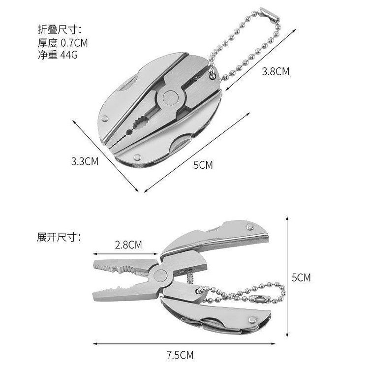 مجهز به پیچ گوشتی چهار سو، دارای کاور برزنتی، دارای کاتر سیم و طناب، دارای سوهان ناخن و دارای درب باز کن.